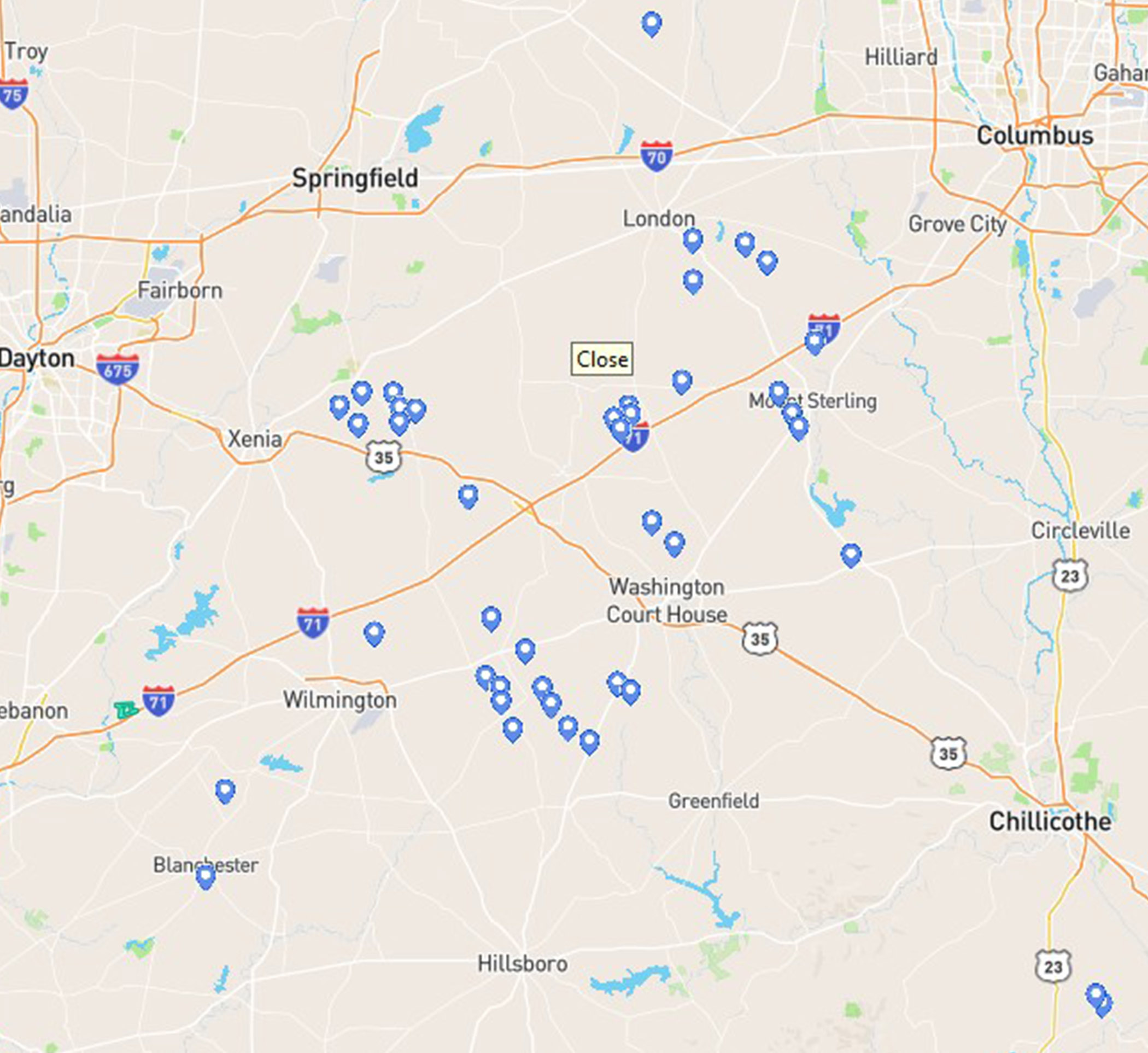 Of those total Halderman managed acres, Robert McNamara manages 12,960+ acres throughout Southwest Ohio indicated by the anchor points below.